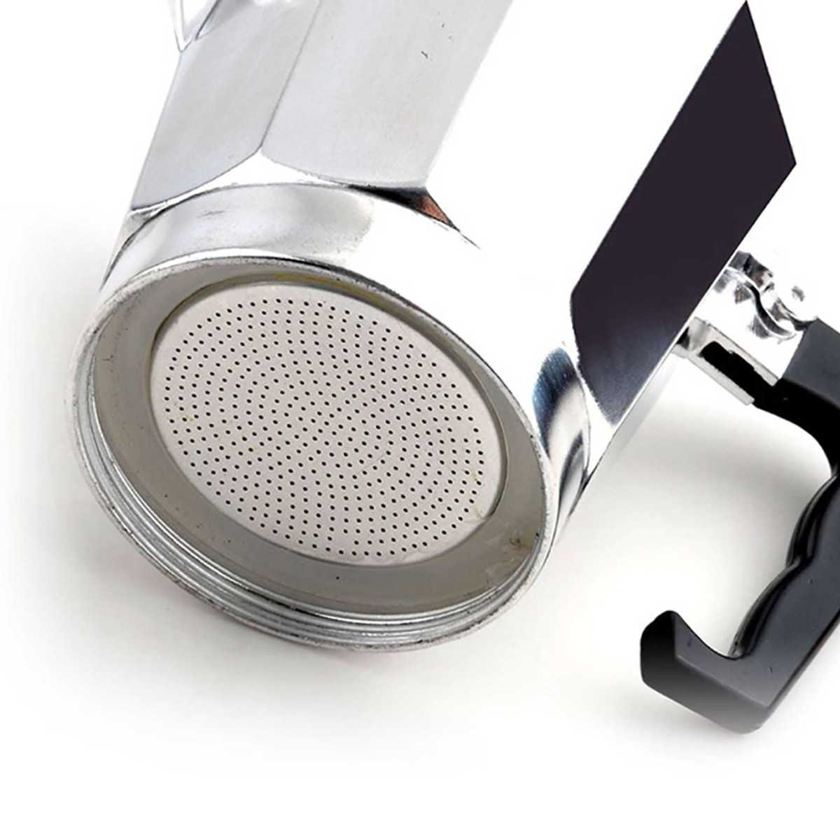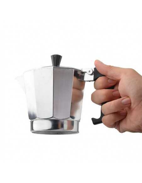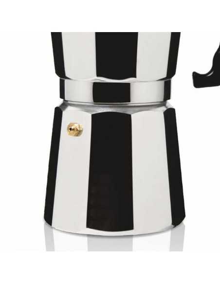 Cafetera Italiana HAEGER MOKA POT 9 con - cuerpo en aluminio, adecuado para todo tipo de fuentes de calor, válvula de seguridad, manejo de aislamiento térmico en negro
