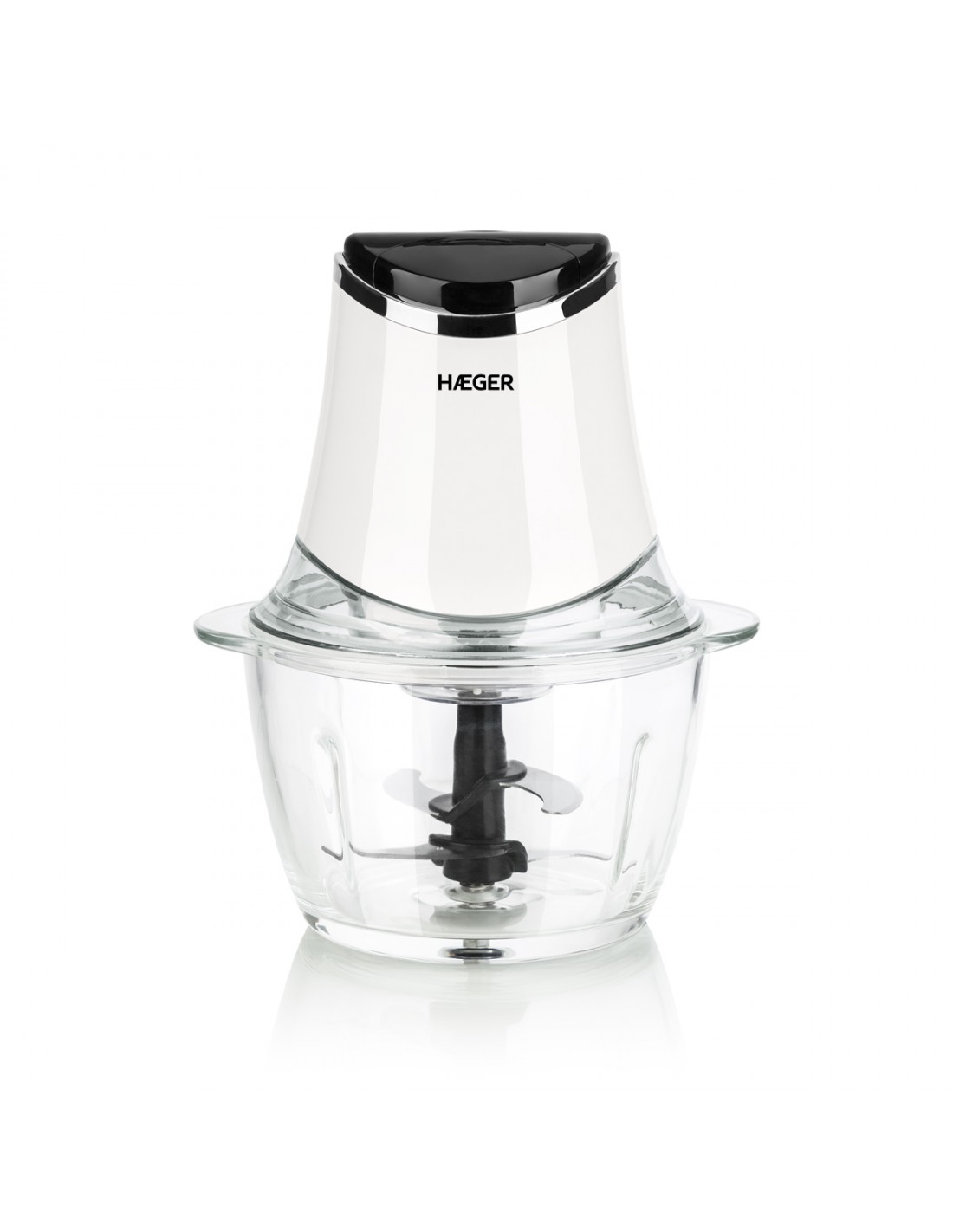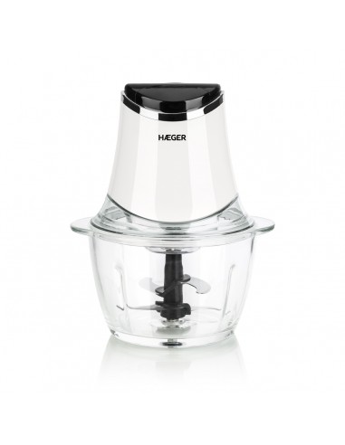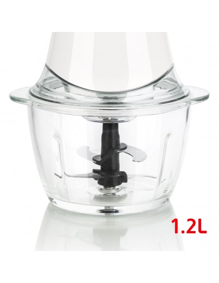 La picadora CHOPPER GLASS tiene una jarra de vidrio de 1.2 litros, cuchillas de acero INOX, base estable, pulsador de operación de 2 velocidades y funciona pulsando el botón superior, y partes desmontables para una fácil limpieza. Potencia: 300 Watts - 220-240V~ 50Hz