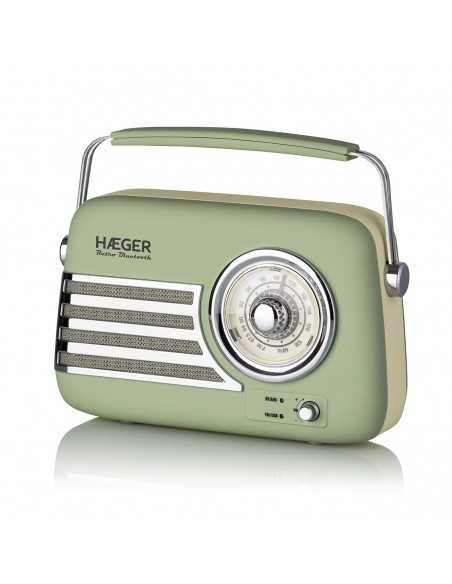 Radio FM Vintage HAEGER Retro Bluetooth - Batería 20H, AM/FM, USB, AUX, Bluetooh