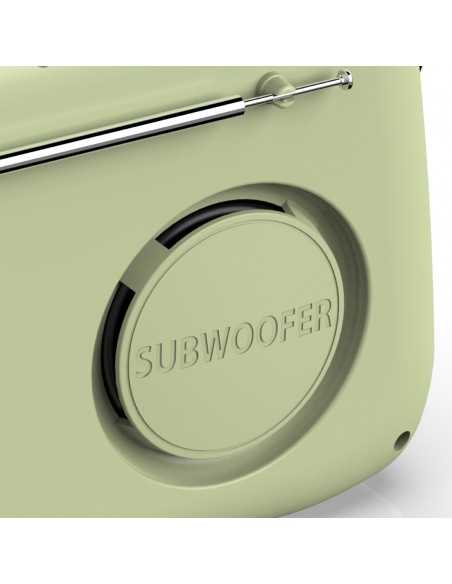 Con un diseño nostálgico que nos transporta a décadas pasadas, esta radio no es sólo un objeto decorativo, sino una pieza funcional que combina lo clásico con la modernidad. Su acabado en verde oliva, los detalles cromados y los mandos de estilo de época hacen de esta radio un elemento que destaca en cualquier entorno.